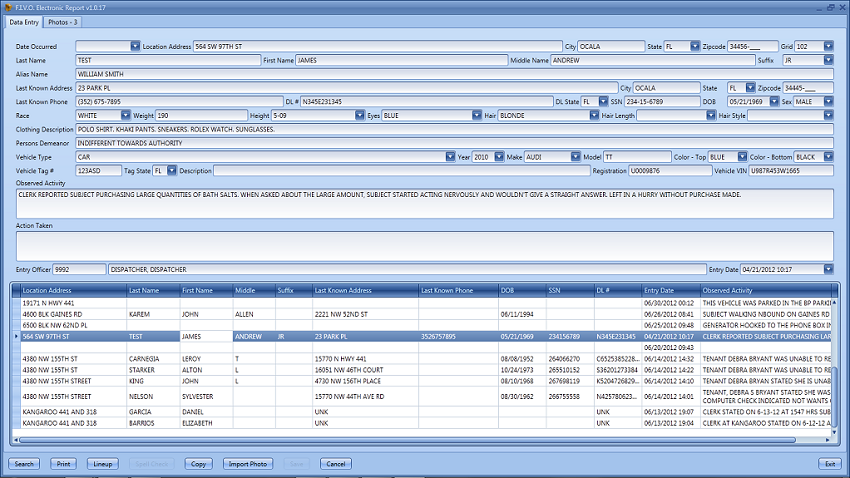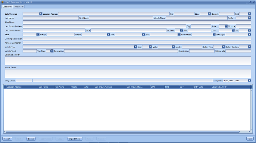 FIVO gives the officers a wide array of picture tools as well. Not only can the officer take a picture of the person or item, but they can import a picture and create a lineup for witnesses to look at. FIVO was designed from the input of active duty law enforcement personnel and allows for a wide variety of information not only to be saved but searched anywhere at any time.