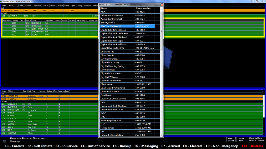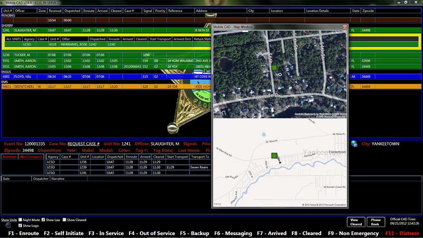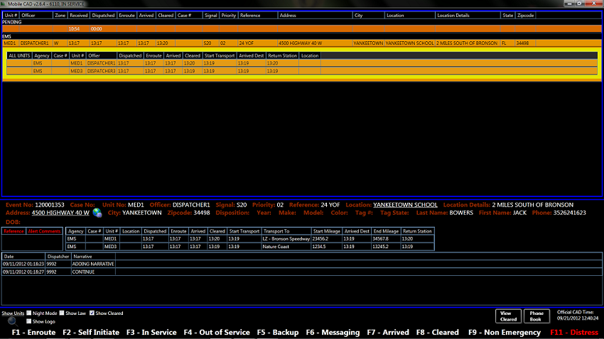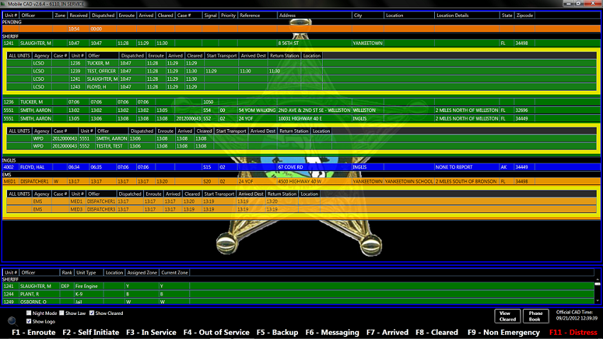 Our Mobile CAD gives First Responders in the field real-time data based off of the information received at dispatching. Mobile CAD allows units to respond to, backup, and review and write narratives on all active calls. Mobile CAD also allows supervisors the ability to see all cleared calls ranging from 1 day to 1 week prior or longer depending on the size of the agency. Mobile CAD features a variety of other tools as well such as upcoming court dates displayed at the bottom of the screen, an active phonebook directory, and mileage recording, and Unit to Unit messaging.