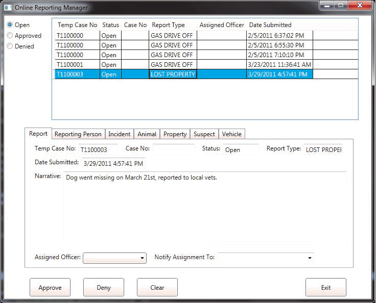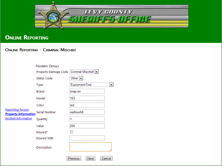 On-Line Incident Reporting is designed to work with many agencies existing Records Management Systems. Using this method will decrease paperwork, save officer’s time and lessen the margin for error in reporting. The reporting party will also be emailed a copy of the approved report so that they can print it themselves or forward it to their insurance company. Anonymous drug tips can also be entered online and automatically forwarded to your drug task force unit. We also allow for your agency’s personalized logo and information, including disclaimers and rules for using On-Line Reporting.