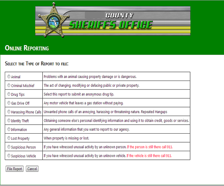 On-Line reporting has a variety of features that can be tailored to fit the needs of any agency, large or small. Our reporting program was developed as a tool to assist law enforcement agencies in gathering information that may otherwise not be reported or would tie up a officer’s time over a low priority incident. Using the safety and confidentiality of a citizens home or business they can file a variety of incidents online. Once an On-Line Incident Report is filed, a temporary case number is assigned and sent VIA e-mail to the reporting person.
