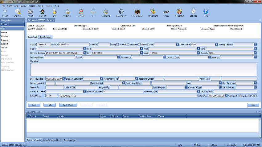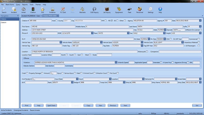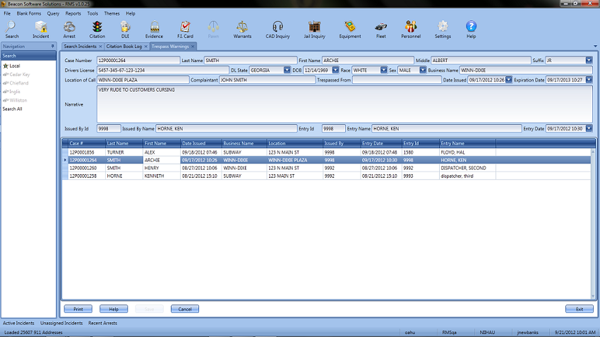 Records Management is an important function of any Agency and Beacon RMS provides a variety of tools to help maintain records in an easy to use way. Beacon RMS includes various modules to archive data such as Citation Book Tracking, Case Management, Trespass warnings, Evidence, Incidents, Arrests and much more. RMS Uses the latest Microsoft technology to create a user friendly interface that provides information to the user at just a few clicks of the mouse.